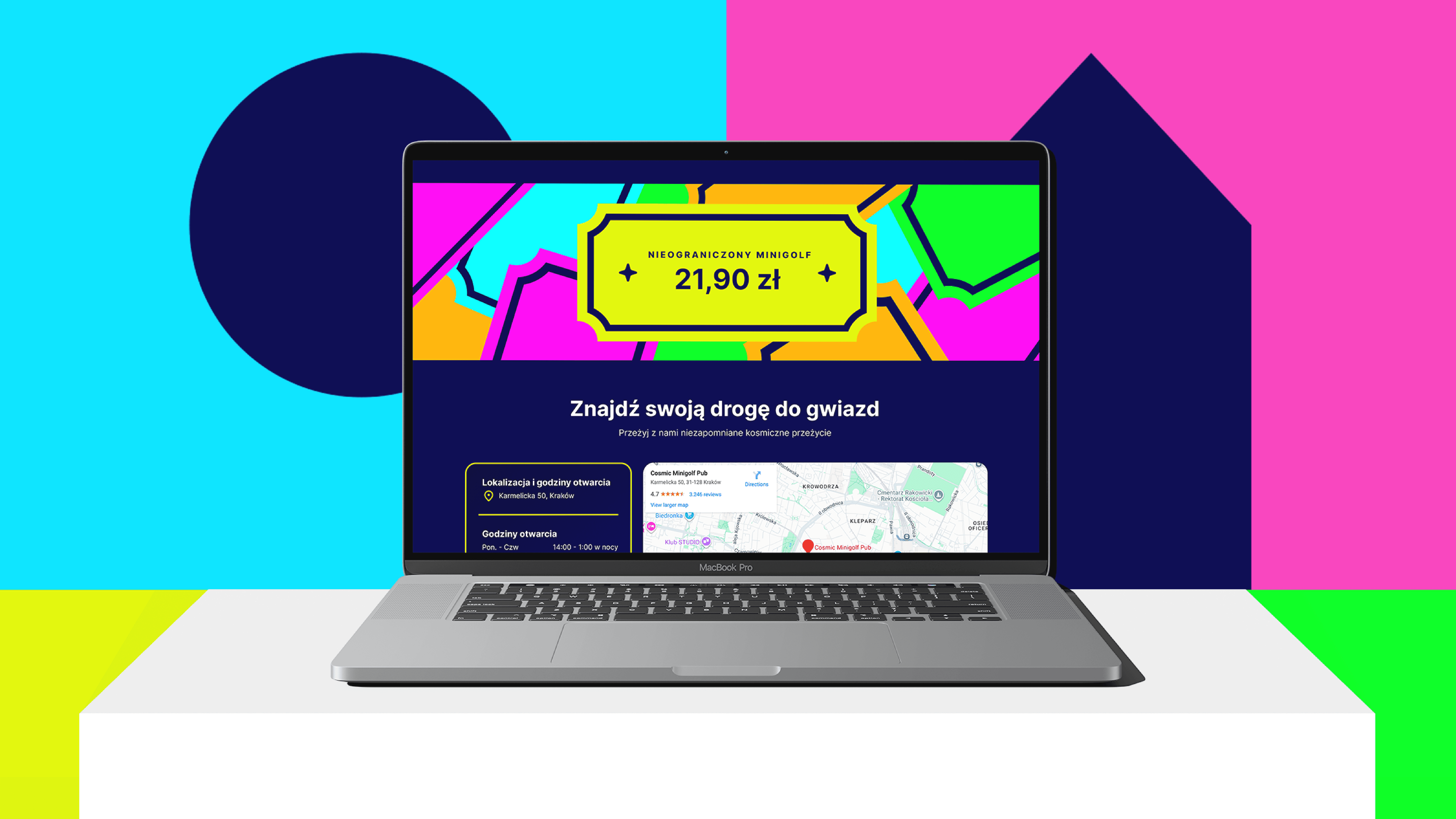 Cosmic Minigolf Pub is a themed entertainment venue located in Krakow that merges a vibrant bar atmosphere. The space stands out for its futuristic aesthetic entirely set under blacklight, including the courses, clubs, and balls.